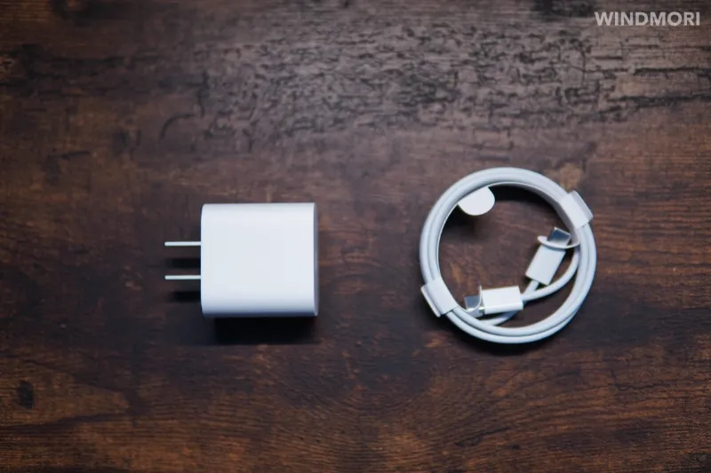 Accessories include the iPad itself, a 20W charger, a USB-C charging cable, and the manual.